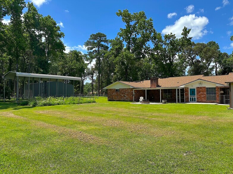 Nestled a few minutes from Kingwood, this property on 2/3 Acres presents a unique opportunity for residential or commercial use. Unrestricted with No HOA. Main road project to be widened to 4 lanes. Featuring a spacious 600 sq ft living area open to a large island kitchen, recent upgrades include a new roof, paint, and porcelain wood tile flooring. With a covered RV parking area and separate utility connections, this home boasts 3 bedrooms, 2 baths, formal living and dining rooms, a covered patio, 2-car garage, and a carport. x