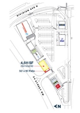 Une unité de vente au détail à capuchon arrière à haute visibilité, dotée d'une signalisation, d'un patio et d'un plan ouvert polyvalent, est disponible à la location. Cet espace est divisible et idéal pour les restaurants à service rapide (QSR), les garderies, les salons de coiffure et de manucure et les cabinets médicaux.