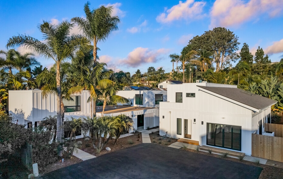 Turnkey and brand new, this five-unit complex is located in the heart of Leucadia and construction was completed in January 2026. The complex includes two matching 2-bedroom, 2.5-bathroom units that were completely remodeled from the original structure. These homes feature large enclosed backyards, mature vegetation, and abundant natural light from the upstairs bedrooms. There are also two matching 2-bedroom, 2-bathroom units built as ground-up new construction. Each offers a private yard, tall vaulted ceilings, and upstairs patios. The final unit is a spacious 1-bedroom, 1-bathroom residence located on the ground level with no steps, providing easy access and the same high-quality amenities found in the other floor plans. All units have their own designated laundry, utilities, and parking. Income potential in this area is exceptional, with two of the units eligible for legal vacation rentals. Do not miss out on this rare gem so close to the beach.