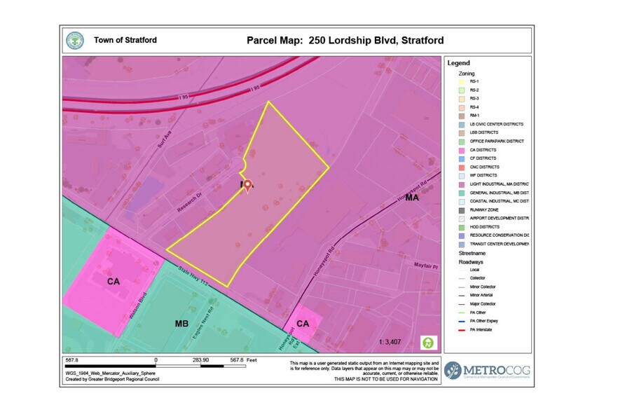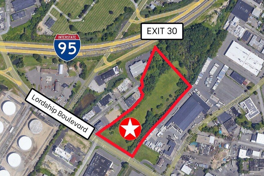 À côté de l'I-95, la propriété se trouve dans une zone très fréquentée avec une excellente visibilité et est facilement accessible avec 450 pieds linéaires de façade sur le boulevard Lordship, ce qui la rend idéale pour l'entreposage extérieur des véhicules.