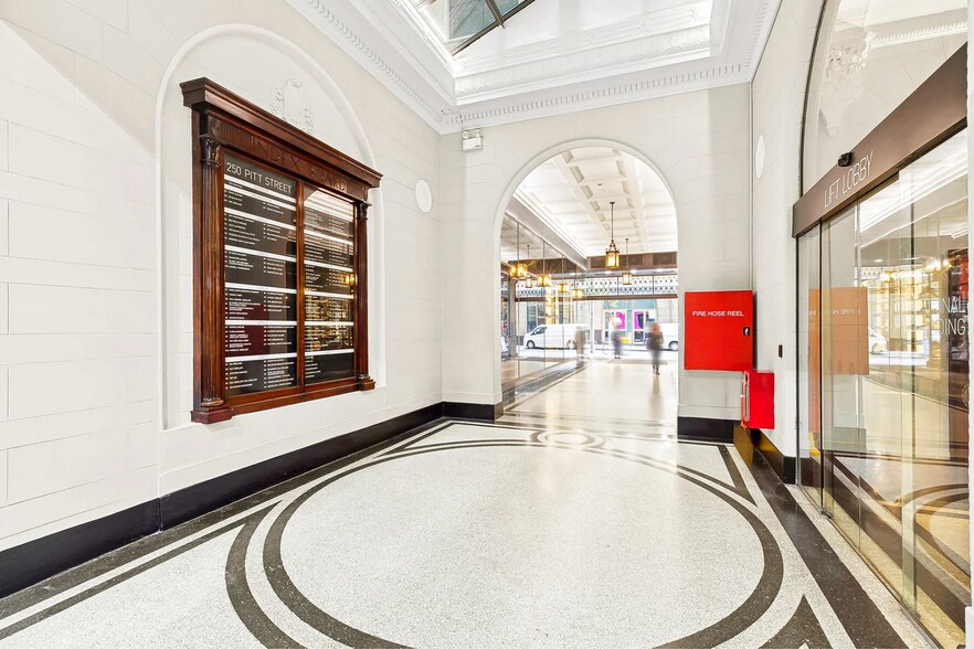 250 Pitt Street is a heritage commercial building completed in 1926. The property is located in Sydney’s CBD near Martin Place, Town Hall, Hyde Park, and Pitt Street Mall, with direct access to the Gadigal Metro Station and proximity to light rail services. The building includes two lifts, security access, and a heritage-style lobby.