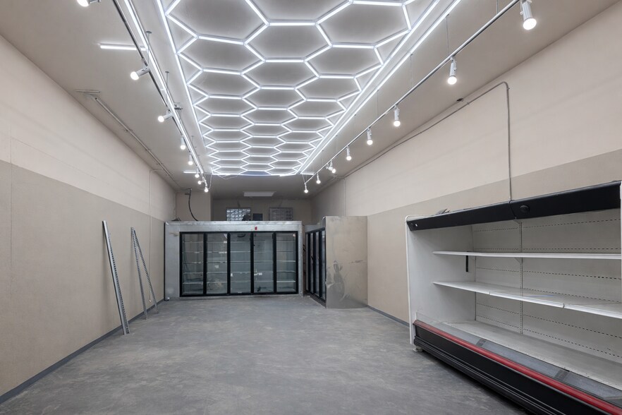 The building features high ceilings, a distinctive honeycomb LED ceiling installation, and a flexible layout adaptable for retail, showroom, studio, or creative use. With strong corner visibility and convenient access to both I-580 and I-880, the property benefits from steady traffic exposure and strategic connectivity.