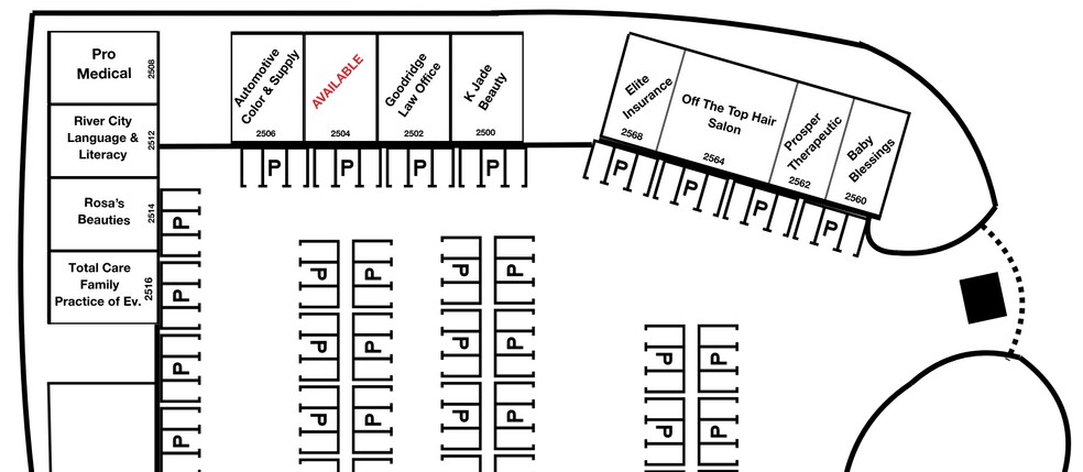 This 1,100 SF suite offers a functional and efficient layout suitable for a variety of retail or office users. The space provides flexibility for day-to-day operations, with a straightforward floor plan that can accommodate different business needs.