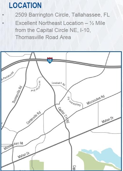 Great NE Tallahassee location with quick/easy access to I-10/Thomasville Rd. Many restaurants, businesses, entertainment nearby.