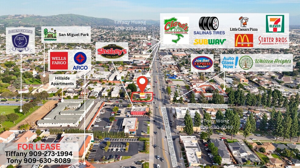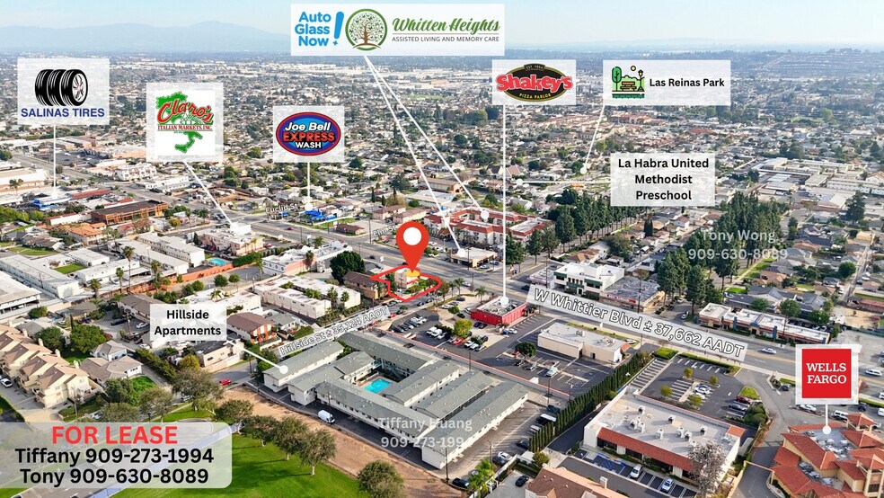 • Pylon Signage Available • ADA-Compliant Parking & Ample On-Site Parking • Close by Schools, Parks, and Apartments • Excellent Visibility and Strong Street Frontage • Centrally Located in Orange and borderline LA County • Prime Location on Whittier Blvd with High Traffic Counts • High Population Community and Household Average Income • Surrounded by Dense Residential Neighborhoods and Local Businesses • Ideal Use: General Office & Retail For Lease / Fortune-telling For Lease / Health Club For Lease / Bakery For Lease / Bank (ATM) For Lease / Art Gallery For Lease / Restaurant (Food & Beverage to go only) For Lease / Tattoo Studio For Lease / Medical Lab For Lease / Doctor & Dentist Office For Lease / Medical & Professional Office For Lease Call/Text for Details: Tony: 909-630-8089 Tiffany: 909-273-1994