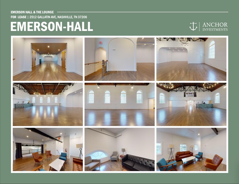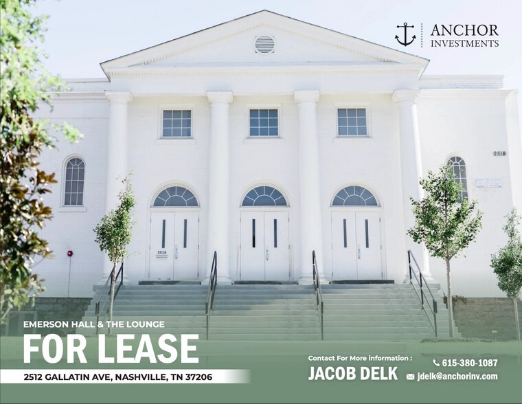 Connected to the Gallatin Hotel, Emerson Hall & The Lounge is a 10,073 SF hospitality-focused space offered for lease at 2512 Gallatin Ave in East Nashville. The building is currently configured with event space on the main and second floors and a basement bar/lounge, providing a compelling opportunity for an experienced operator seeking a unique, high-character location in one of Nashville’s most active submarkets. Key features: - 10,073 SF total - Event space on main + second floor - Basement bar/lounge component - Highly visible Gallatin Ave location in East Nashville (37206) - Distinctive architecture and strong street presence - Suitable for restaurant/bar/entertainment concepts