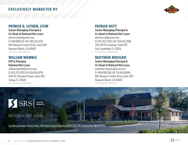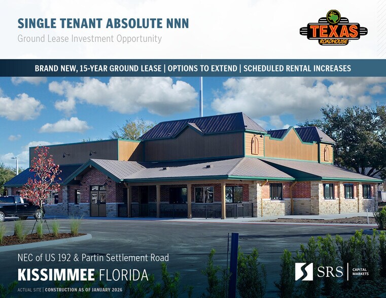 Texas Roadhouse | Brand New 15-Yr Abs NNN GL 2515 Partin Settlement Rd 8 000 pi² Commerce de détail Immeuble Kissimmee, FL 34744 5 279 655 $ CAD (659,96 $ CAD/pi²) 4,70% Taux de capitalisation