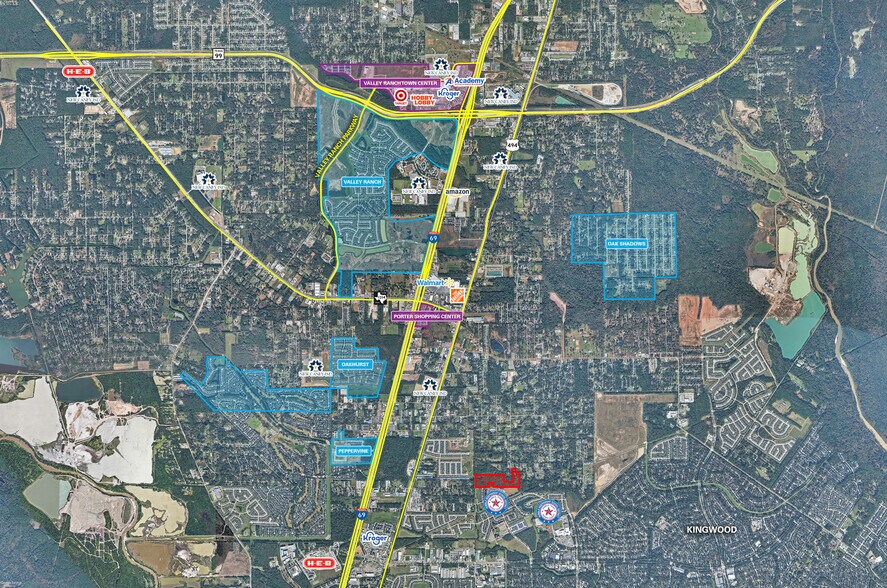 Le terrain disponible est situé à Porter, au Texas, juste à l'est de la boucle 494. Le site est entouré de maisons résidentielles denses et est à l'arrière de la Woodridge Forrest Middle School.