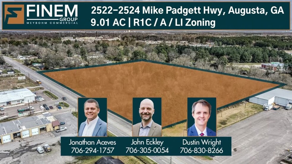 L'équipe Finem de Meybohm Commercial est fière de présenter en exclusivité cette parcelle de terrain de 9,0 acres à vendre à Augusta, en Géorgie. Les services publics sont à proximité, la topographie est plate, le sol est sablonneux, bien drainé et partiellement humide. La propriété est pleine d'arbres. Une partie de la propriété est actuellement industrielle légère et le reste de la superficie devrait être rezonée Industrielle légère au cours des prochaines semaines. Le trafic quotidien de l'autoroute Mike Padgett est de 11 300 voitures.