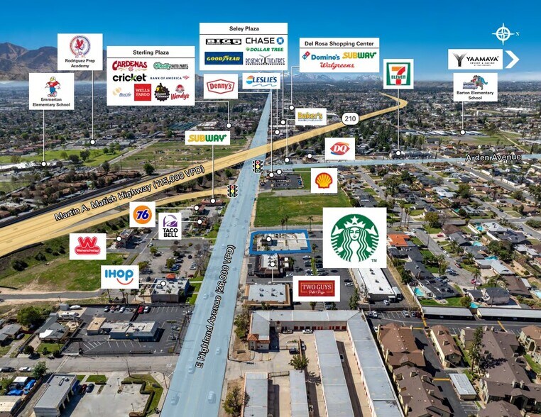 - Emplacement souhaitable à la bretelle de décollage de l'avenue E Highland jusqu'à l'autoroute 210 (115 000 VPD) | Emplacement en angle dur avec deux (2) coupes de bordure