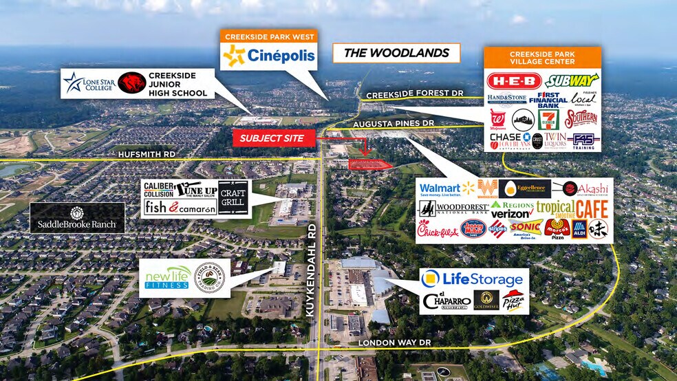 - Located between Grand Parkway & Woodlands Parkway on Kuykendahl Road, the north/south corridor in and out of The Woodlands. Near Creekside Village.
