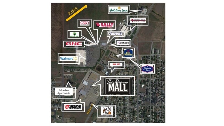 - Le centre commercial Pampa offre une grande visibilité le long de Perryton Pkwy.