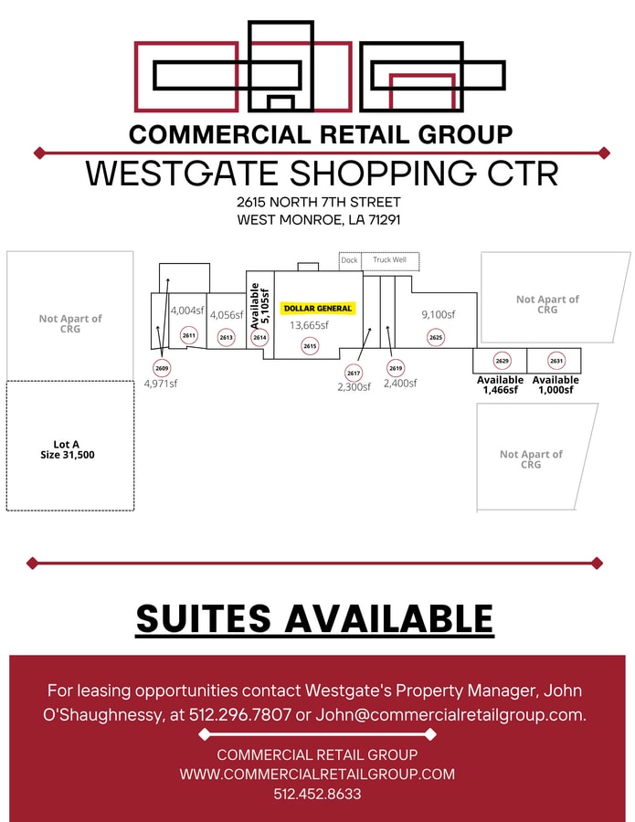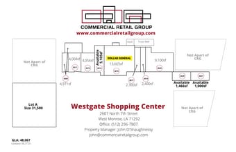 Westgate Shopping Center 2609-2633 N 7th St 1 000–7 571 pi² d'espace disponible • Commerce de détail • West Monroe, LA 71291