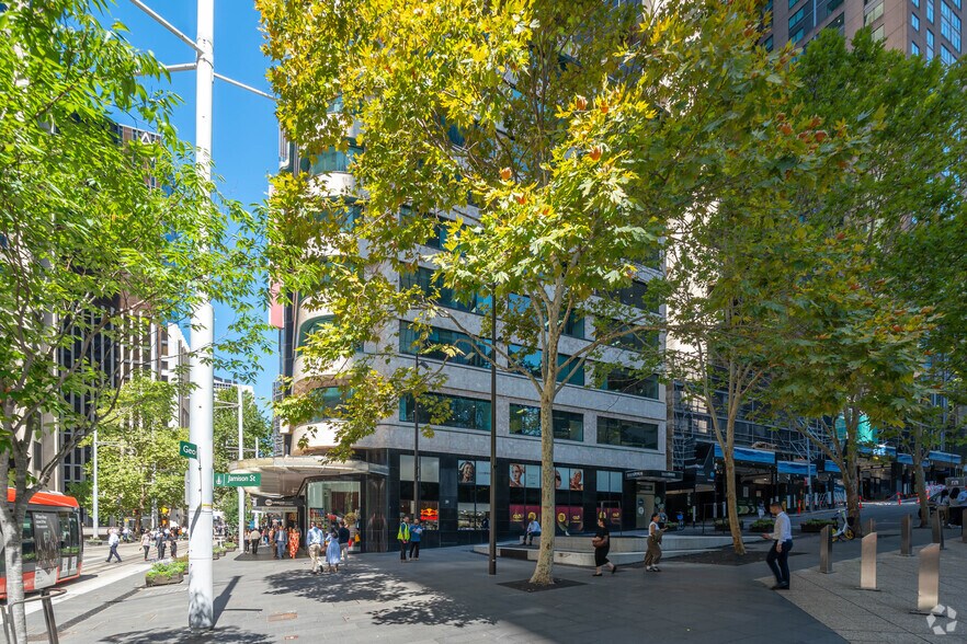 The Telford Trust Building at 261 George Street is a commercial office building located at the intersection of George and Jamison Streets in Sydney’s central business district. The property is currently undergoing upgrades, which include the installation of new lifts and a refurbishment of the main lobby. The building features natural light on three sides and incorporates modern finishes and design elements throughout its office spaces. The location provides convenient access to multiple public transport options, including Wynyard Station, Circular Quay, Martin Place Metro, and the George Street Light Rail. The surrounding area includes major financial institutions, dining venues, and other amenities commonly associated with Sydney’s financial core.