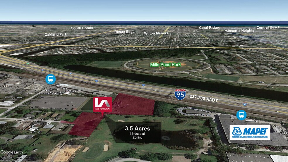 Parcelle industrielle zonée M-3 de 3,5 acres située à Fort Lauderdale directement en face de l'I-95 et des lignes de banlieue Tri-Rail avec une visibilité incroyable et une exposition à plus de 237 700 véhicules par jour et 15 000 passagers de train !