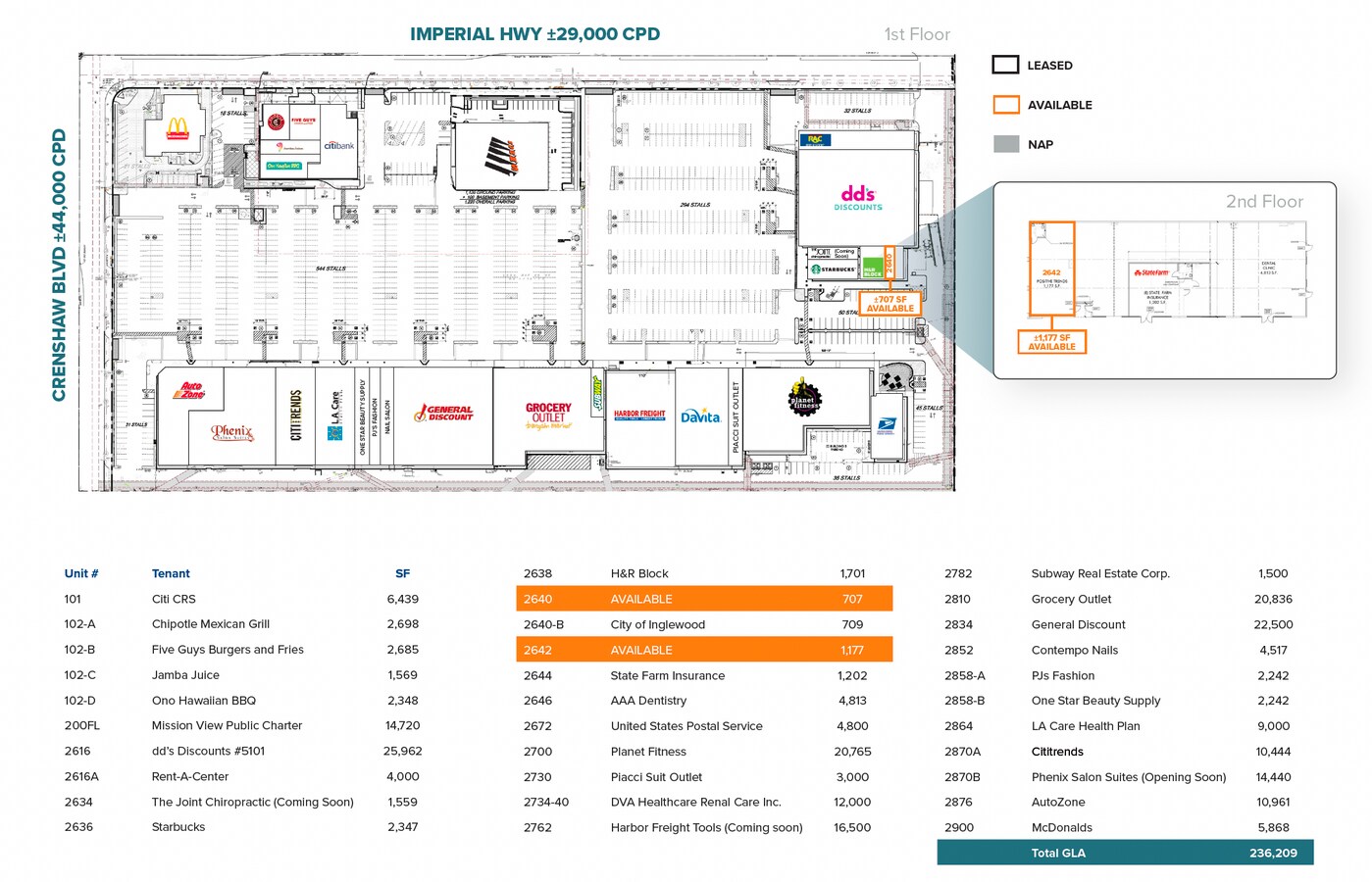Crenshaw-Imperial Plaza 2616-2900 W Imperial Hwy 707–1 884 pi² d'espace disponible • Commerce de détail • Inglewood, CA 90303