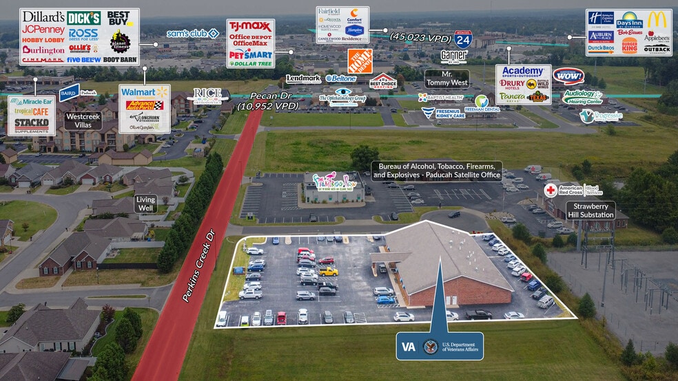 We are pleased to exclusively offer for sale the 11,500 SF Department of Veteran Affairs facility located at 2620 Perkins Creek Drive in Paducah, KY. The property operates as a Community-Based Outpatient Clinic (CBOC), delivering primary care, mental health services, and a variety of specialty outpatient services. The clinic is supported by seven providers across approximately 9 specialties, ensuring consistent patient demand and essential healthcare services for the surrounding community, providing for a strong and stable investment opportunity.