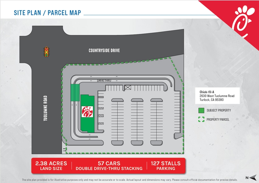 New 15-Year Absolute NNN Corporate Ground Lease | Adjacent to Monte Vista Crossings (14M Annual Visits/Top 5 Power Centers in CA, Placer.ai) | 2 Miles from Cal State University, Stanislaus (11,000+ Students) | Oversized 2.38-ac Parcel; 57 Car Double-Drive Thru Stacking; 127 Parking Stalls