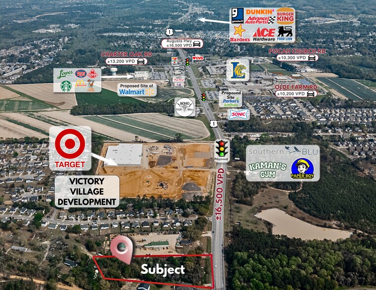 PROPERTY +/-2.26 Acres of Land This property is surrounded by commercial and residential developments to include a new Target development which includes Academy Sports, Lexington High School, and additional commercial developments in the West Lexington corridor which will soon see connection with I-20 and Calks Ferry in addition to the Longs Pond connection. The parcel presents a prime opportunity for a wide range of development possibilities. LOCATION The site is situated at the highly traveled four lane Augusta Hwy / US #1. This corridor has recently seen significant redevelopment and growth with the new Target shopping center coming soon. ZONING ID / Intense Development / Commercial