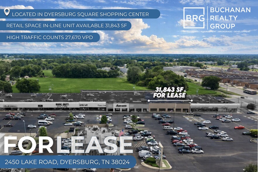 Located at 2450 Lake Rd, this 31,000 sq. ft. commercial space offers an ideal setting for businesses seeking high visibility and heavy foot traffic. Nestled In-line and directly behind the bustling Chick-fil-A, this unit is part of a vibrant shopping center that attracts over 500,000 visitors annually. The open floor plan provides flexibility for various uses, from retail to professional services. Large storefront windows invite natural light, creating an inviting atmosphere for customers. With ample parking, easy access, and a prime location amid established retailers, this vacancy is a rare opportunity to establish or expand in Dyersburg’s thriving retail hub.