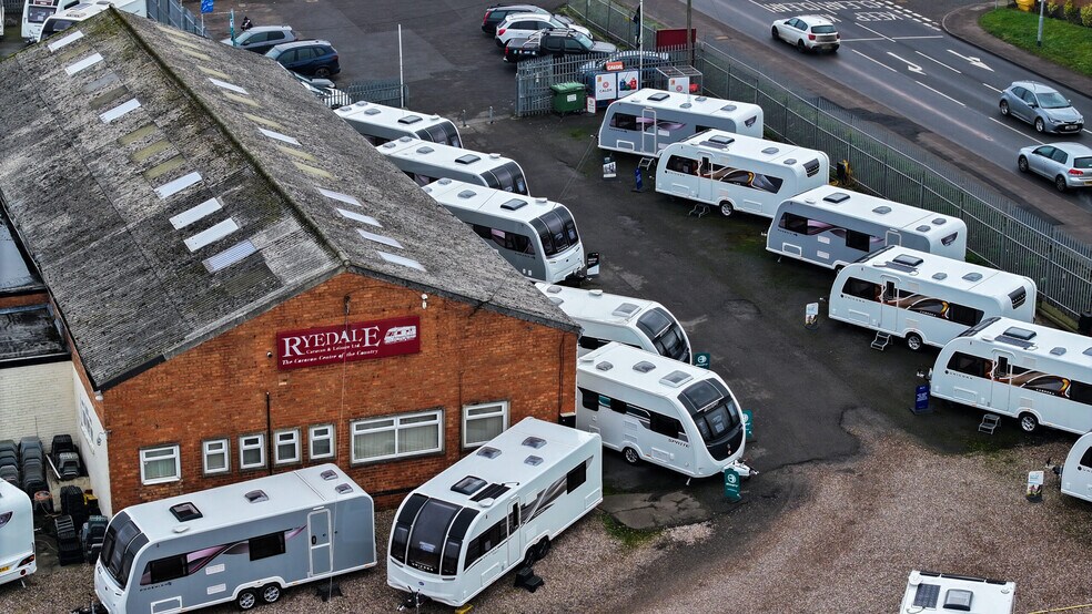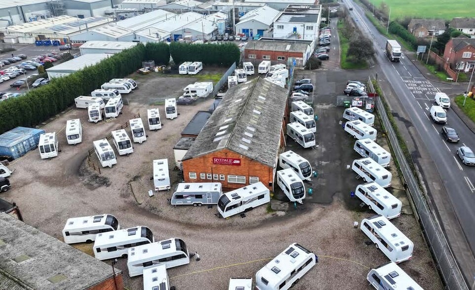 - Salle d'exposition et entrepôt en propriété libre vacants utilisés auparavant pour la vente et l'entretien de caravanes et de caravanes.