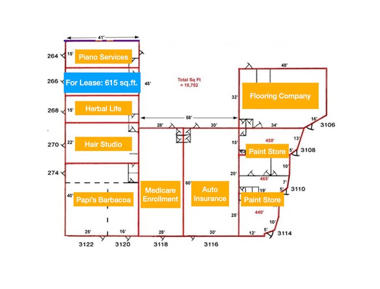 | Superficie totale disponible | 615 pi² | Superficie commerciale brute | 10 701 pi² |