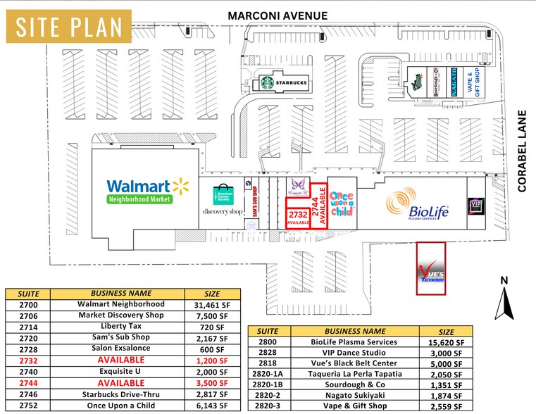 Découvrez les meilleures possibilités de location de bureaux et de commerces de détail au 2700-2828, avenue Marconi, situé au cœur du corridor commercial animé de Sacramento. Cette propriété offre une gamme d'espaces flexibles, de 2 559 à 5 000 pieds carrés, idéalement adaptés aux entreprises qui visent une exposition maximale. Ancré par un marché de quartier Walmart, le centre bénéficie d'une circulation piétonnière constante et d'une excellente visibilité le long d'une grande artère. Avec des tarifs de location concurrentiels, des options d'espace polyvalentes pour la personnalisation et des possibilités d'affichage importantes, cet emplacement offre un avantage stratégique à toute entreprise qui cherche à renforcer sa présence dans un quartier commercial dynamique.