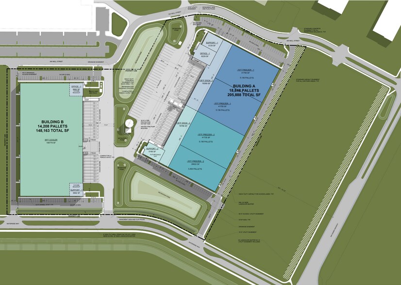 - Two-building Class A cold storage development totaling ±355,357 SF