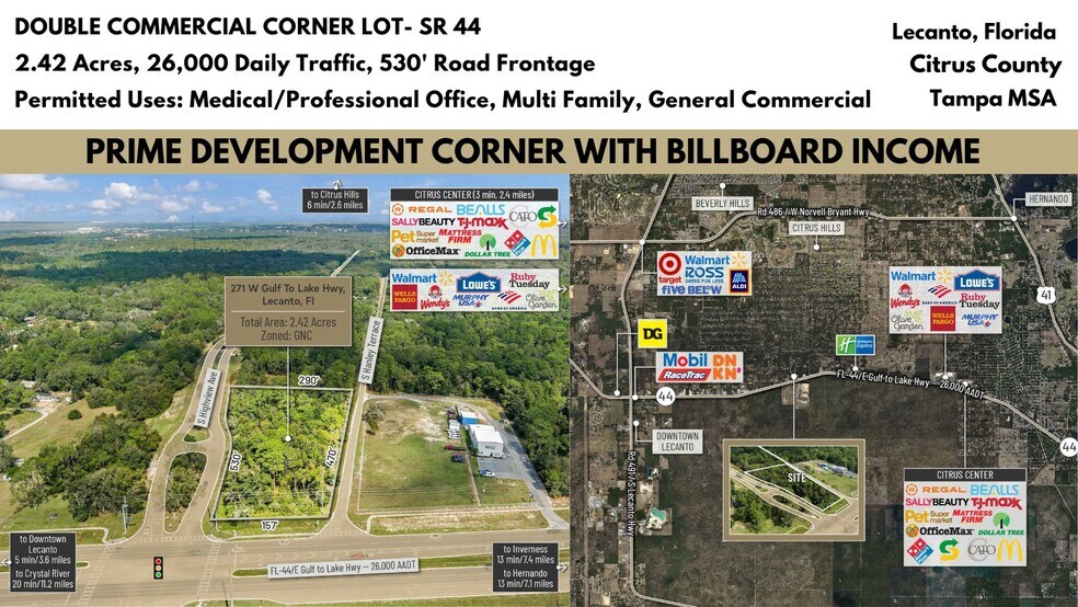 271 W Gulf to Lake Hwy - Prime Signalized Double-Corner Lot on SR44 Lot • Terrain commercial • 2,42 Acres • 395 767 $ CAD • Lecanto, FL 34461