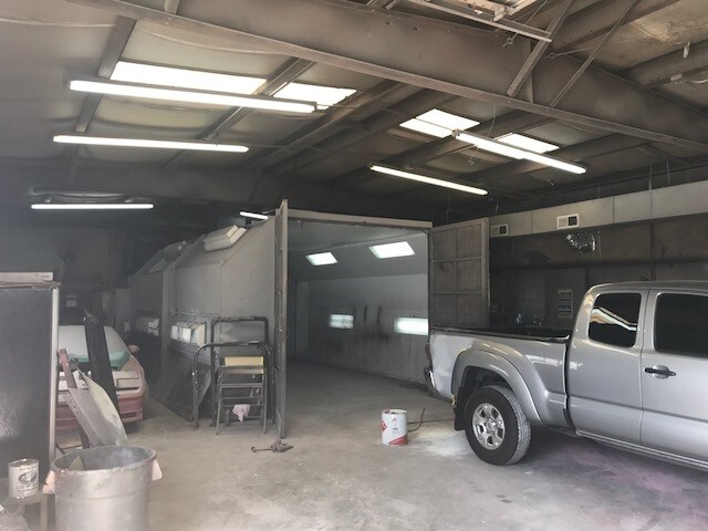 Property Details: - 5,000 sq. ft. building featuring a paint booth, office and reception space all heated. Includes customer bathroom in lobby and separate staff bathroom. - 15,000 sq. ft. fenced-in area with 6,000 sq. ft. of parking inside and an additional 1,200 sq. ft. outside the fence.