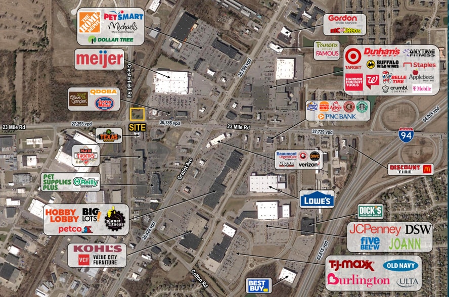 Position your business at the heart of Chesterfield’s thriving retail corridor with this exceptional pad site opportunity. Located at 27169 23 Mile Rd, this highly visible 1-acre corner parcel offers unmatched exposure and accessibility. Available for ground lease, build-to-suit, or lease, the site supports a wide range of commercial uses including retail, financial institutions, medical offices, restaurants with drive-thru, and automotive services. Utilities are already in place, and the proposed build is slated for 2026, ensuring modern design and infrastructure. This is the last remaining parcel within a dynamic retail hub anchored by national brands such as Meijer, Kohl’s, Lowe’s, and Walmart, guaranteeing strong consumer traffic and synergy. With over 21,000 vehicles passing daily and affluent demographics boasting household incomes exceeding $110,000 within a 5-mile radius, the location offers exceptional potential for sustained growth and profitability. Whether you’re expanding a regional footprint or launching a flagship concept, this site delivers the visibility, convenience, and market strength your business needs.
