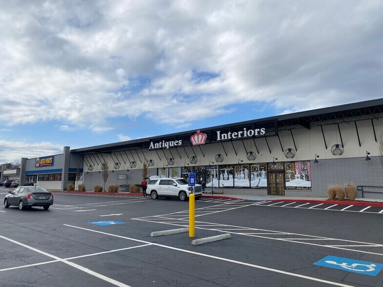 - Les principaux locataires du centre comprennent Queen of Hearts Antiques et Napa Auto Parts.