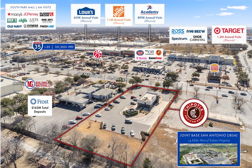 - Frontage Along SW Military Dr (42,500+ VPD) | 1 Mile From I-35 (101,200+ VPD)