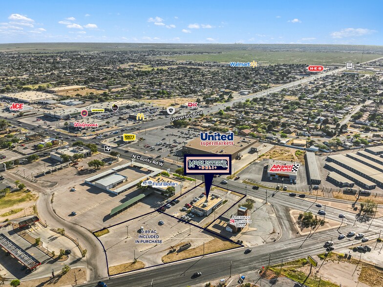 McAlister's Deli (the “Property”) is a freestanding restaurant property prominently located at 2744 N County Road W in Odessa, Texas, positioned near the signalized intersection of North County Road West and Kermit Highway. The Property benefits from strong visibility, convenient access, and proximity to surrounding retail and commercial developments that generate consistent traffic to the area.