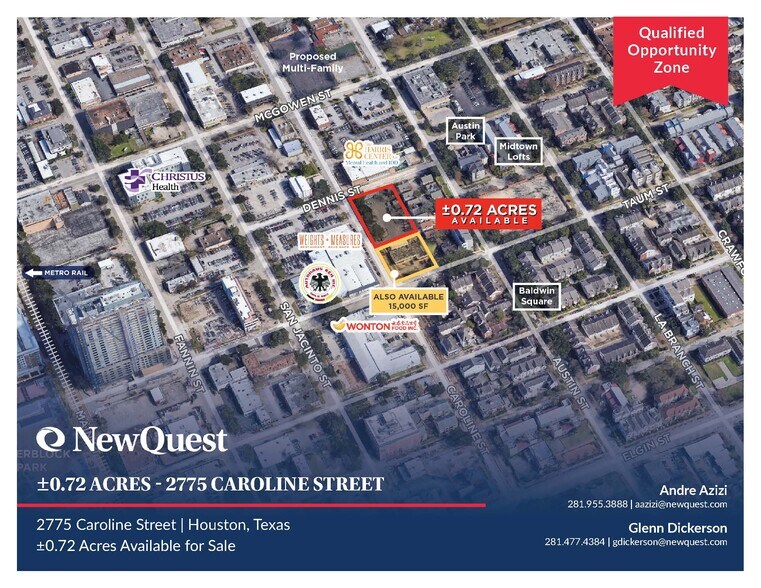 ±0.72-acre tract in Houston’s Midtown area, located at Caroline St. & Dennis St. within a Qualified Opportunity Zone. The site offers dual street frontage, zero parking requirements, and proximity to major highways and MetroRail.