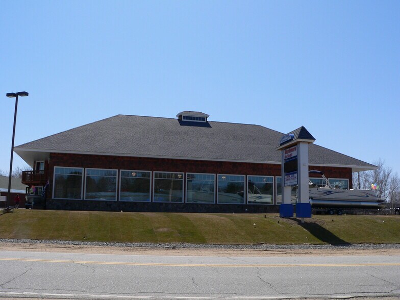 One of the classiest looking buildings in Gilford! (Noncompete does not allow alcohol or food selling businesses in this location, IE: Restaurants, Prepared Foods or Breweries) Do you need to be seen? This is one of the busiest corners in the lakes region, and the front of this building is Gorgeous and all glass! Incredible Visibility In our building we have "The Wining Butcher a 20 year tenant, The Gateway Spa and MessageNH a 10 year tenant, Edward Jones & H. Salon, which have all been here a minimum of 5 years"! Across the street is a 350 slip yacht club with another 100 units in Valet and there guests (lots of potential customers) The "Bank of NH Pavilion" is the best concert venue in the north east is within walking distance from the building and creates a lot of people walking and driving right by this building! (lots of potential customers) 1.5 miles from the extremely busy private Laconia Airport, this could create tremendous opportunities for the right business! In the same complex there is Patrick's Pub, NH State Liquor Store, Bay Gulls (an area favorite bagel store) as well as a brand new market called Lake Shore Market & Deli. Directly across The space out front that is available was built to be a boat showroom to support a local Marina, so it is wide open with a level concrete floor with 3 offices and a bathroom.