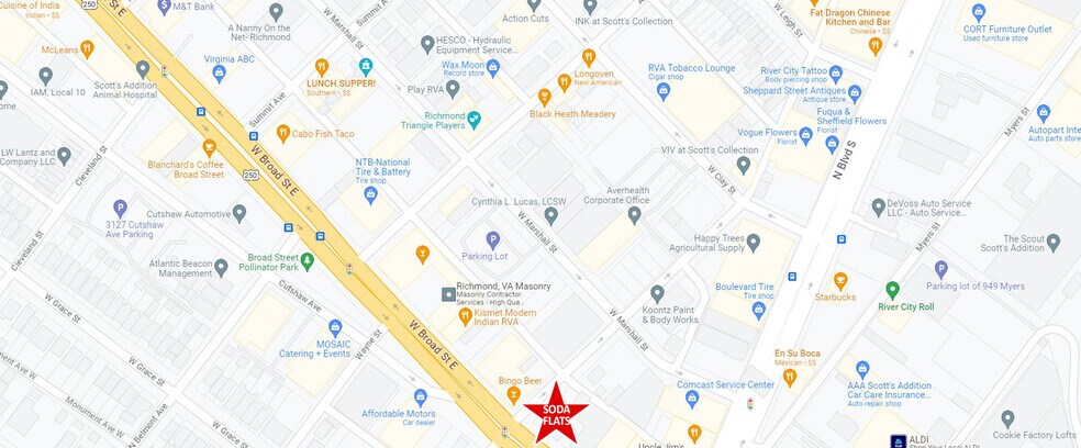 Soda Flats 2820-2828 W Broad St 1 672–4 330 pi² d'espace disponible • Bureau/Commerce de détail • 4 étoiles • Richmond, VA 23230