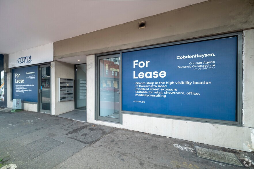 The property comprises a ground-floor commercial space with a bright, open-plan layout and large glass frontage for maximum exposure. The interior includes a rear kitchenette and benefits from excellent natural light, creating a functional and inviting environment. Positioned along Parramatta Road, the building enjoys high visibility and easy access to public transport, making it ideal for businesses seeking strong exposure in a strategic location.