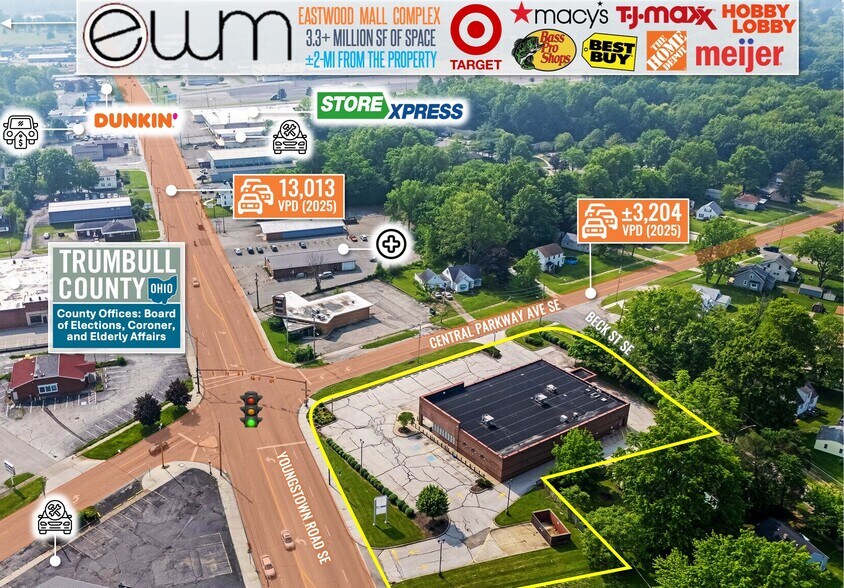 - Signalized Hard Corner with ±13,013 VPD Traffic Counts on Youngstown Rd SE and ±3,204 VPD on Central Parkway Ave SE
