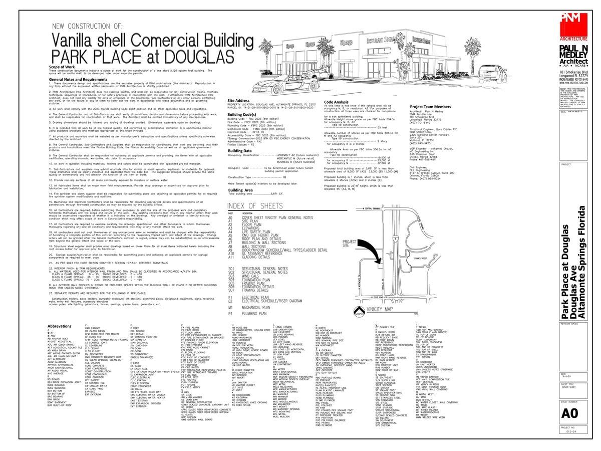 ***Available Now***Park Place at Douglas Plaza offers Retail, Restaurant and Office Tenants. Spaces completed as of April 2026 in Warm Grey Shell condition with some Vanilla Shell components (slab, demising walls, HVAC, Power service, etc....) and ready for immediate occupancy. There are two great end cap spaces with one offering a 550 sf covered patio (Free to Tenant) and the spaces can also be combined off Tenants need a larger space. The project is located in central Altamonte Springs with easy access to busy SR 436 and SR 434 and near I-4 and is within walking distance to 5 Nationally flagged limited service hotels including; Townplace by Marriott, Residence Inn by Marriott, Hampton Inn Suites by Hilton, Wyndham by Ramada and Extended Stay America. The Plaza is across the street from Cracker Barrel Restaurant, Waffle House and Longhorn Steakhouse and adjacent to a well known bowling alley. The building offers a total of 5,871 contiguous sf in the building, will be Class A construction and the parking ratio is 8 spaces per 1,000 sf.