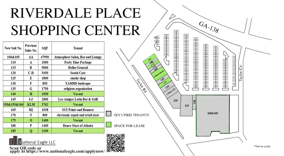 Riverdale Place Shopping Center 286 Highway 138 SW 1 050–8 312 pi² d'espace disponible • Bureau/Commerce de détail • Riverdale, GA 30274