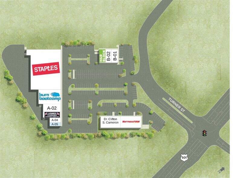 -Bien situé dans le corridor commercial et ancré par Staples, Shops on the Green est soutenu par la US Highway 15/501 et US 1 adjacente à Walmart