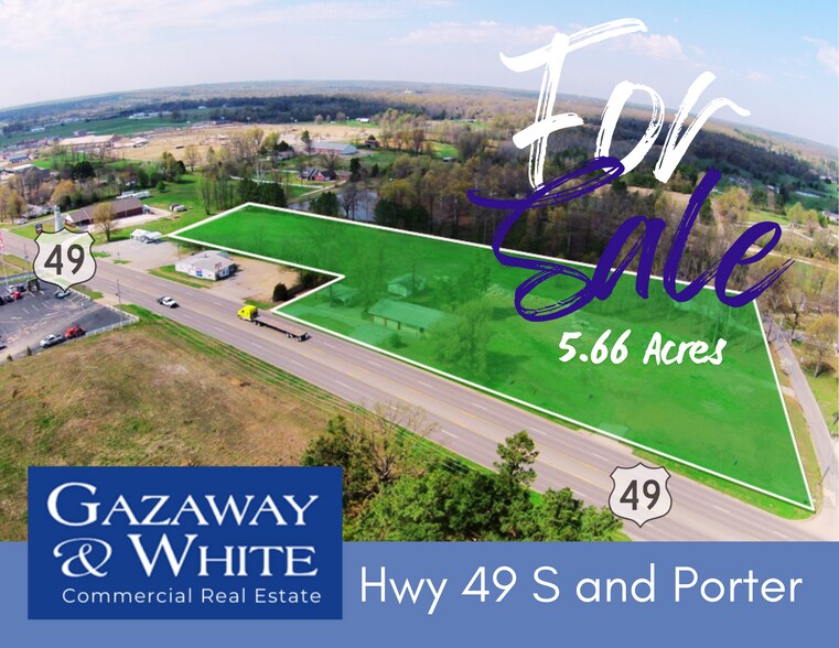 Située à un excellent coin de la route 49S, cette propriété se trouve à environ 1/4 mile du nouveau marché Wal-Mart. Visibilité élevée et services publics disponibles. Angle de l'autoroute 49 Sud et de la promenade Porter.