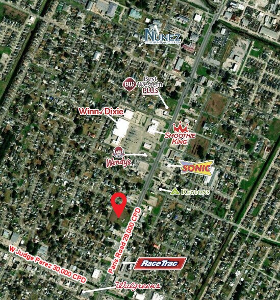 Situé au cœur de Chalmette, le 2910 chemin Paris offre une occasion exceptionnelle de bail foncier. Ce site stratégiquement situé offre une grande visibilité et un accès facile, ce qui en fait un endroit idéal pour le commerce de détail, le service ou le développement commercial. À proximité de destinations populaires telles que Walmart, CVS, Winn Dixie et d'une variété d'options de restauration locales et nationales. L'établissement bénéficie également d'un accès direct à Paris Road, une artère clé reliant les autoroutes 90 et I-10 et offrant des liaisons rapides vers la grande région métropolitaine de la Nouvelle-Orléans.