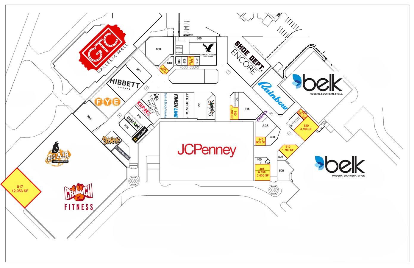 Available suites range from 590 - 12,000 SF. Houston County Galleria is a 480,808 SF regional mall serving the Warner Robins area, one of Georgia's fastest-growing, most economically stable markets. The Galleria is 94% occupied and features over 60 national & regional retailers, including Belk, JCPenney, Crunch Fitness, Big Air Trampoline Park, Bath & Body Works, Victoria’s Secret, Finish Line, and Galleria 15 Cinema. Recent redevelopment of the former Sears box and a new 156-unit luxury multifamily project on site strengthen the property's appeal. The Houston County Galleria sits in one of Middle Georgia’s most established and visible retail corridors along Watson Boulevard, drawing steady traffic from Centerville, Warner Robins, and the broader Houston County area. The surrounding community is stable and growing, with strong household incomes and a solid base of families, professionals, and long-term residents. Retail in this part of Houston County benefits from good road connectivity, high daily vehicle counts, and a broad trade area.