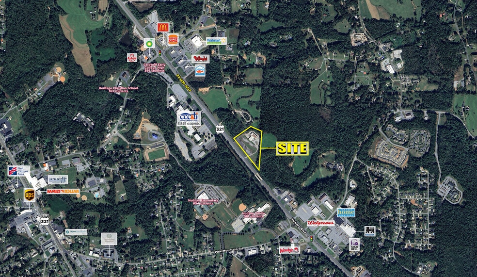 ±3,50 acres de terrain commercial disponibles à vendre ou à louer Plus de 850 pieds de façade sur l'autoroute 321 Directement en face du Caldwell Community College Les futures améliorations routières du NCDOT incluent un espace de demi-tour devant le site pour capter le trafic en direction sud. Les détaillants à proximité incluent Walmart Neighborhood Market, Food Lion, McDonald’s, Burger King, Walgreens, Wendy’s, et d'autres.