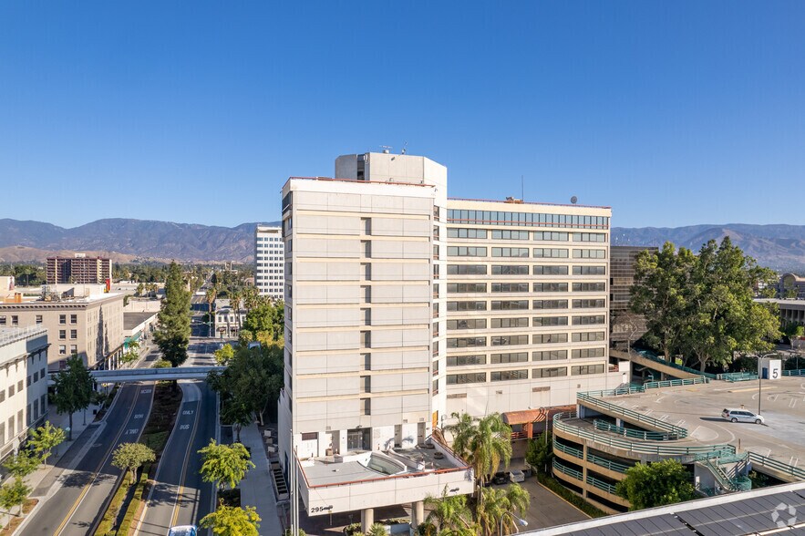 - The building spans 12 stories with beautiful views of the San Bernardino Mountains and is attached to a conference center leased from the city.