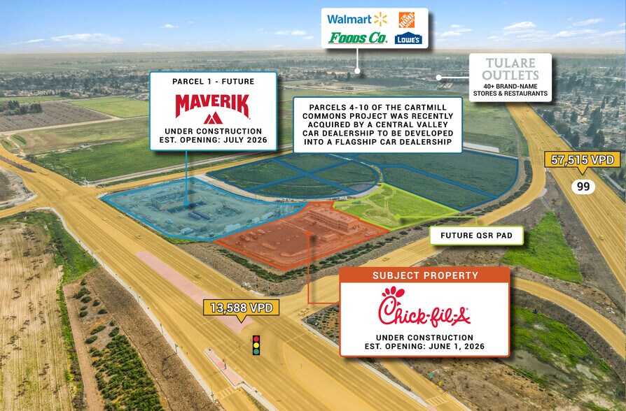 For sale is a new construction Chick-Fil-A ground lease featuring a 15-year initial term, scheduled rental escalations, and multiple option periods. The subject property is currently under construction with an anticipated June 1, 2026 store opening, offering investors secure long-term income backed by one of the most productive quick-service restaurant brands in the country.