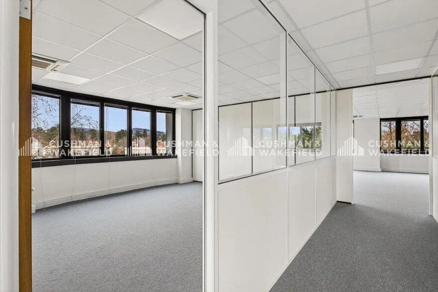 Cushman & Wakefield propose à la location ou à la vente des bureaux situés au Parc Crécy, rue Claude Chappe à Saint-Didier-au-Mont-d'Or. Cet immeuble entièrement rénové développe une surface totale de 1 593 m², divisible à partir de 159 m², offrant une grande souplesse d'aménagement. Les plateaux, lumineux grâce à de larges ouvertures sur un environnement paysager calme et verdoyant, sont proposés nus ou cloisonnés selon les besoins. Un plateau clé en main de 270 m², entièrement cloisonné et prêt à l'emploi, est disponible au 2e étage. Les surfaces permettent d'accueillir des configurations en open space ou en bureaux cloisonnés, adaptées aux PME comme aux grandes entreprises. Les parties communes modernisées assurent un cadre de travail confortable et professionnel. Plusieurs places de stationnement extérieures complètent ce bien et facilitent l'accessibilité des occupants et visiteurs. L'emplacement offre un accès rapide aux axes routiers et aux transports en commun environnants et services. 2 entrées palières Stores Fibre optique Sanitaires : Parties communes Plateau bureaux neuf Surface divisibles Luminaires LED Goulottes périphériques Huisseries neuves Moquette neuve Rafraichissement des PC Air rafraichi collectif réversibles Surface RDC : 479 m²
