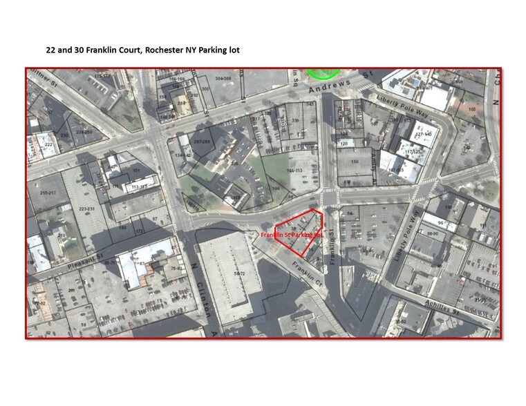 Deux parcelles 30 Franklin Ct et 22 Franklin Ct., actuellement utilisées comme parking payant d'environ 55 à 60 places de stationnement. Le revenu moyen est d'environ 38 000$ par année, les loyers sont de 3$ par jour ou de 30$ par mois.